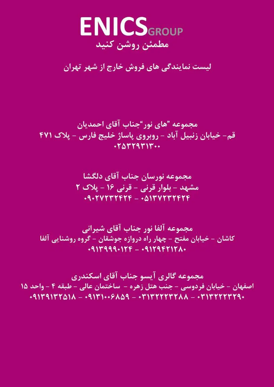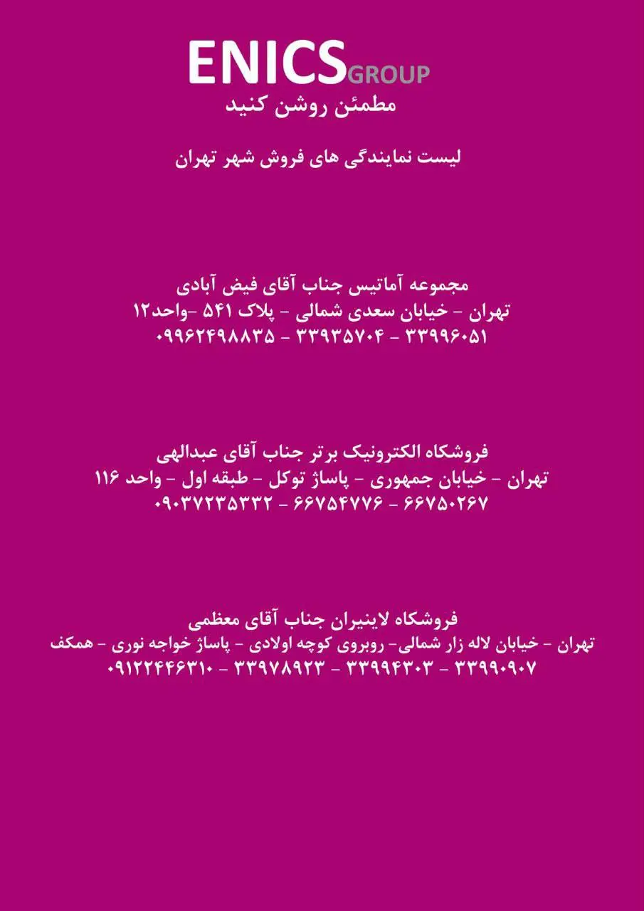 لیست نمایندگان فروش شهر تهران